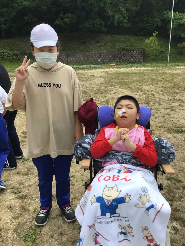 久しぶりの外気浴。ひまわり教室のお友達とも会えました。