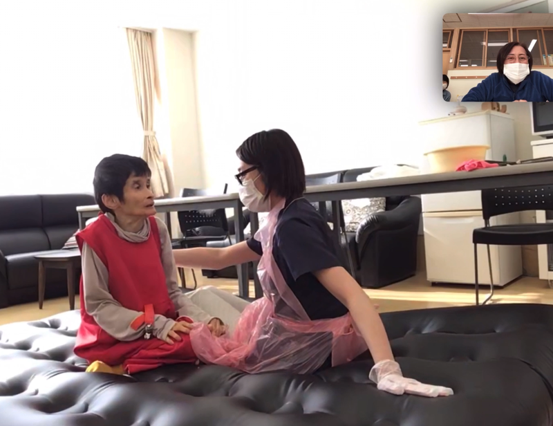 2病棟 iPadで本校の見学 「久し振りに会えたね!」