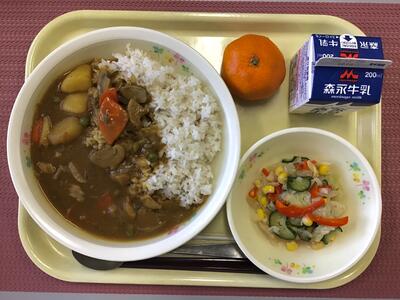 チキンカレー(麦ごはん),牛乳,イタリアンサラダ,みかん