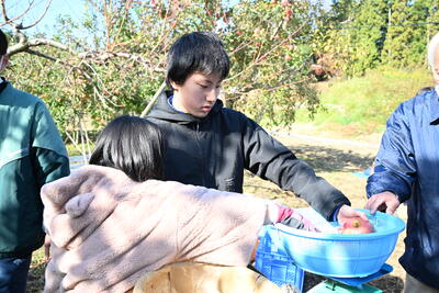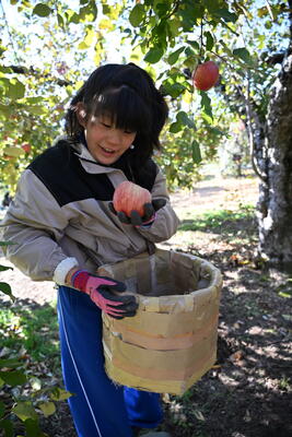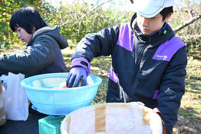 購入していただいた先生方、お家の方々のために、おいしそうなりんごを選んで丁寧に収穫しました。