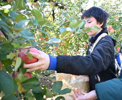 11月19日(水)に、阿部りんご園でりんごの収穫をしました。