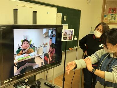 画面を通して教員と保育士さんと一緒に体ほぐし体操。