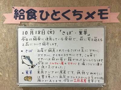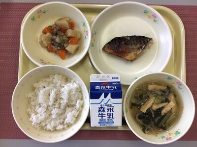 麦ごはん,牛乳,さばの塩糀焼き,里芋のそぼろ煮,小松菜と油揚げのみそ汁