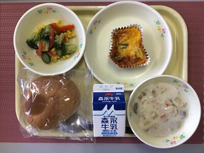 【10/19(水) 食育の日献立:アメリカのボストン風クラムチャウダー】