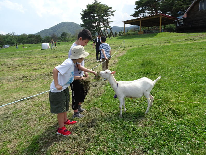 ハートランドでやぎにえさをやりました。草をたくさん食べてくれました。