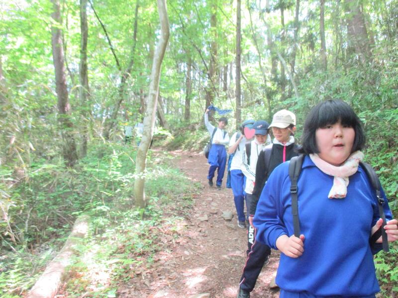 4月28日(金)深山山麓少年の森で登山を行いました。この日のために学校裏山のたんれんの森や学校周辺で歩行練習を重ね、本番に挑みました。当日は天気にも恵まれ、何度か休憩を挟みながら無事に登頂に成功しました。山頂にある鎮魂の鐘を順番に鳴らし、記念撮影を行った後、下山しました。