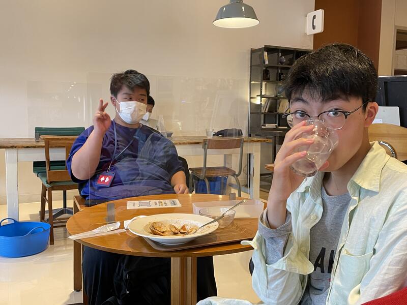昼食は宮城県美術館内にあるカフェモーツァルトでパスタやカレーを食べました。おいしい料理に満足気な表情が見られ,雨の移動で疲れた身体をリフレッシュできました。