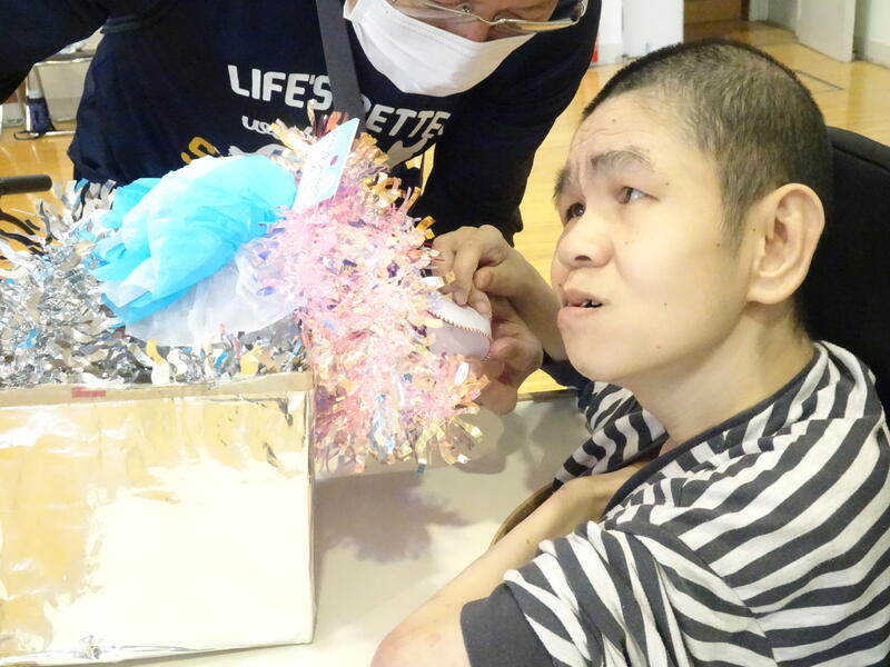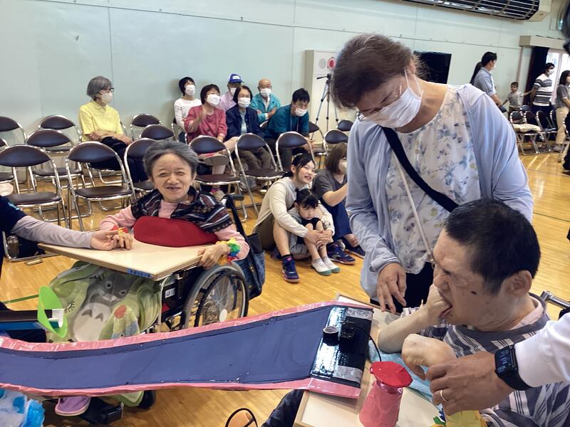スイッチを押すとお手玉がコロコロ。みんな応援してくれました。