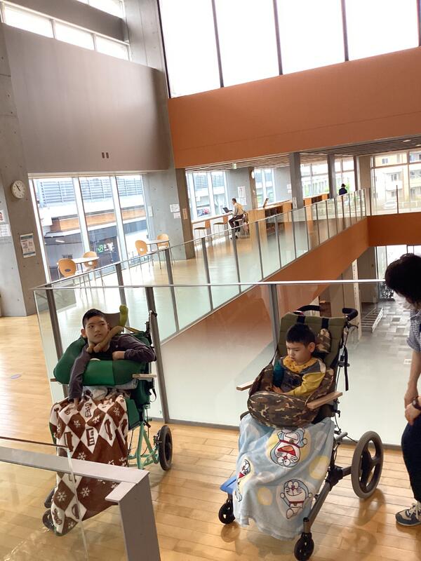 校外学習第2弾はつばめの杜ひだまりホールです。気持ちの良いテラスや吹き抜けの広い空間を楽しんできました。