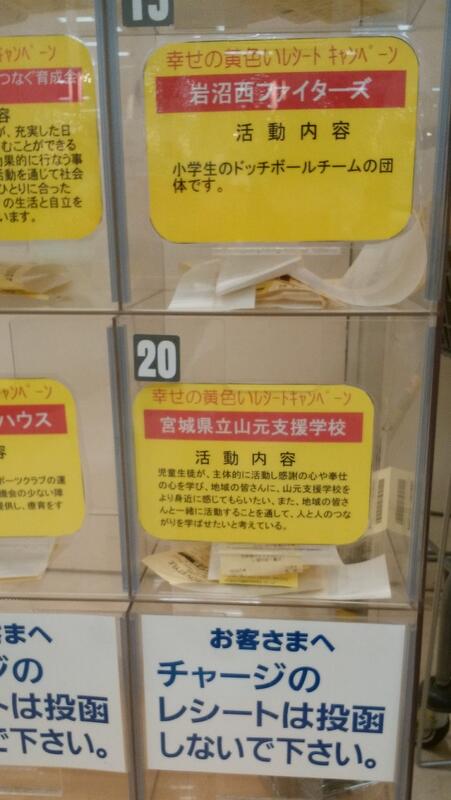 山元支援学校は,イオン株式会社が行っている「幸せの黄色いレシートキャンペーン」に,9月より団体登録をしました。(キャンペーンの詳しい内容はこちらです→イオン 幸せの黄色いレシート