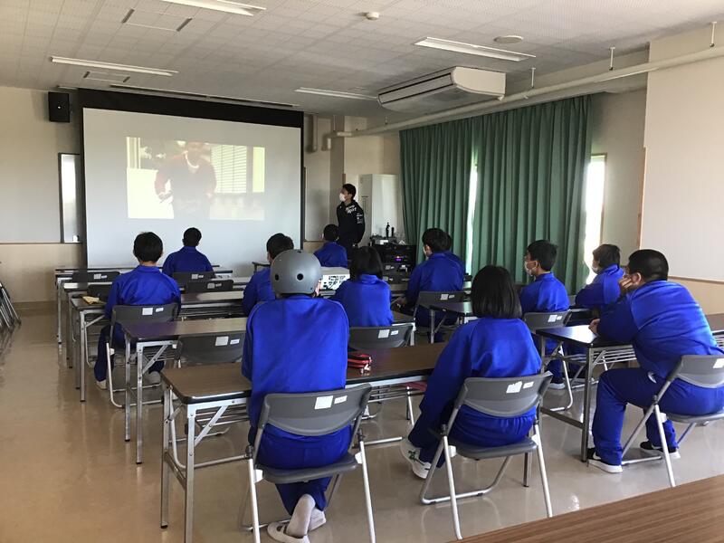 4月27日(火)体育館にて交通安全教室を行いました。まず,道路を横断する際の注意事項をまとめた映像を視聴してから,警察署からお借りした模擬信号機を設置して,実際に信号の点灯や点滅を確かめて横断歩道を渡る練習を行いました。高等部ではさらに自転車に乗車する生徒を対象に自転車交通ルールの確認も行いました。