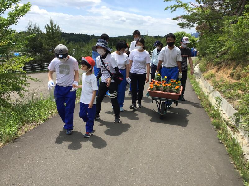5月25日(火)今年度初めての花いっぱい運動(植栽作業)を行いました。小学部から高等部の児童生徒が縦割りで4つのグループに分かれ,プランターにマリーゴールドを植えました。高等部生徒が小中学部の児童生徒に植え方を教えたり,サポートしたりと,異年齢の交流はどの学部の児童生徒にとっても有意義な時間となりました。プランターは,学校周辺の宮城病院,第二みやま荘,地球村・清和園,桜塚集会所に置かせていただきました。地域の方々にそれぞれの場所の花をみて,温かい気持ちになってもらいたいと思います。今後は児童生徒が交代で水やりなどの管理を行います。