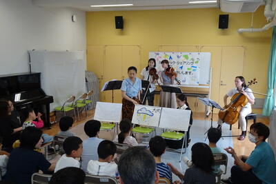 カルテット(弦楽四重奏団)による本物の音楽を、子どもたちは間近で聴くことができ、素敵な時間を過ごすことができました。