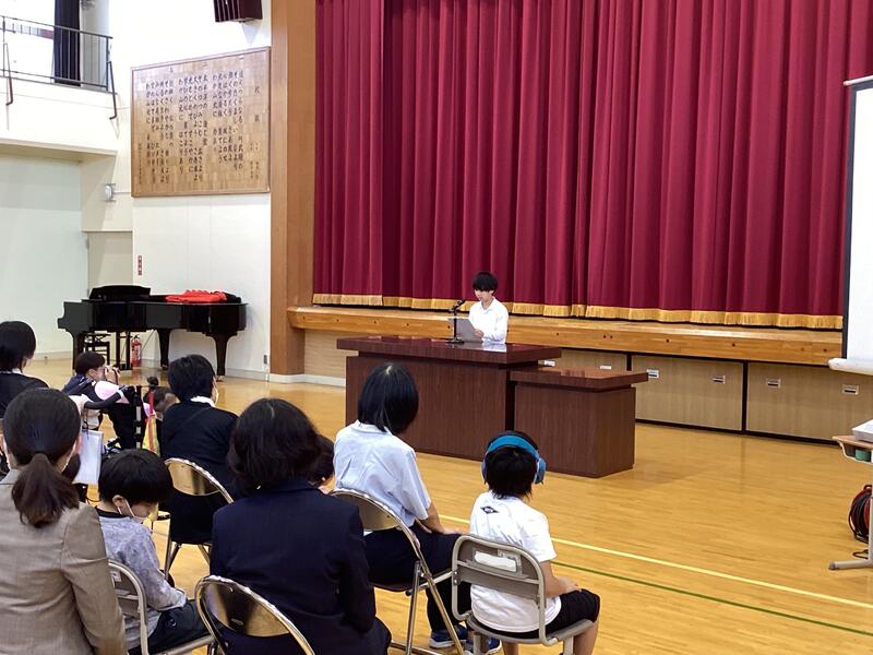 10月11日(金)に前期の終業式を行いました。校長先生の話の後、前期に頑張ったことについて、代表の児童生徒が発表を行いました。また、終業式終了後に、多読賞について表彰を行いました。明日から5日間の秋休みをはさみ、17日から後期が始まります。