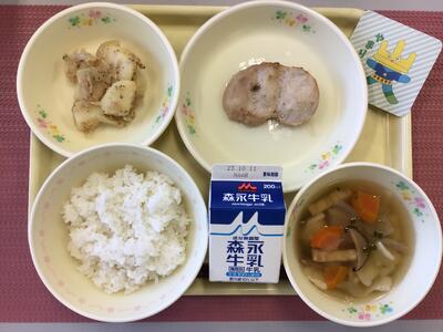 ごはん、牛乳、鶏肉のみそ焼き、ツナポテト、手作りはっと汁