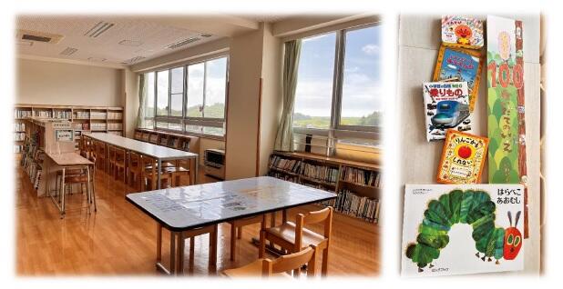 図書室には大型絵本や音の出る絵本、図鑑などの蔵書があります。貸し出した本の冊数に応じて表彰もしています。