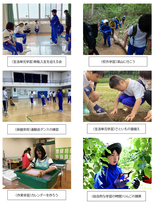 個の実態に合わせた支援だけでなく、集団への参加や公共のルールを意識するといった社会性を身に付ける学習も行います。校外学習では公共交通機関や施設の利用を通して、マナーの向上や余暇の充実を目指しています。作業学習では牛乳パックを利用して紙をすき、カレンダーを製作します。作業学習を通して働くことに関心をもち、作業に必要な基礎的な知識・技能を身に付けることや前向きに取り組む姿勢を目標にしています。