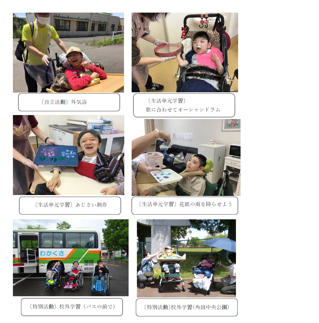 あすなろ教室の児童生徒は、全員が宮城病院に入院しており、一人一人の実態や障害の程度に応じた支援を行っています。健康の保持・増進を図りながら心身の調和的発達を促し、将来たくさんの人と関わる中で思いを伝えながら豊かに生活することを目指して学習活動に取り組んでいます。